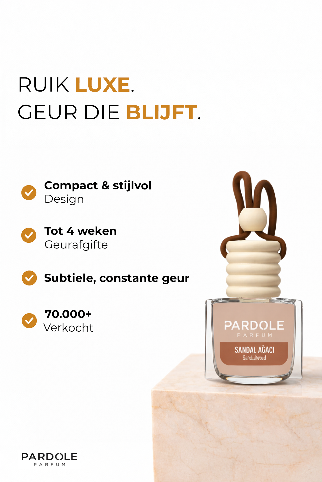 Onze parfums bevatten tot 30% parfumoliën, een dubbele concentratie vergeleken met veel designermerken. Dat zorgt voor rijke, diepe geuren die de hele dag op je huid blijven hangen. Waar anderen vervagen, blijft Pardole krachtig aanwezig. Luxe die beter presteert, voor minder.